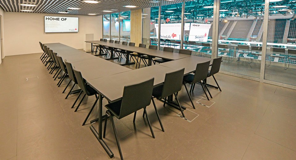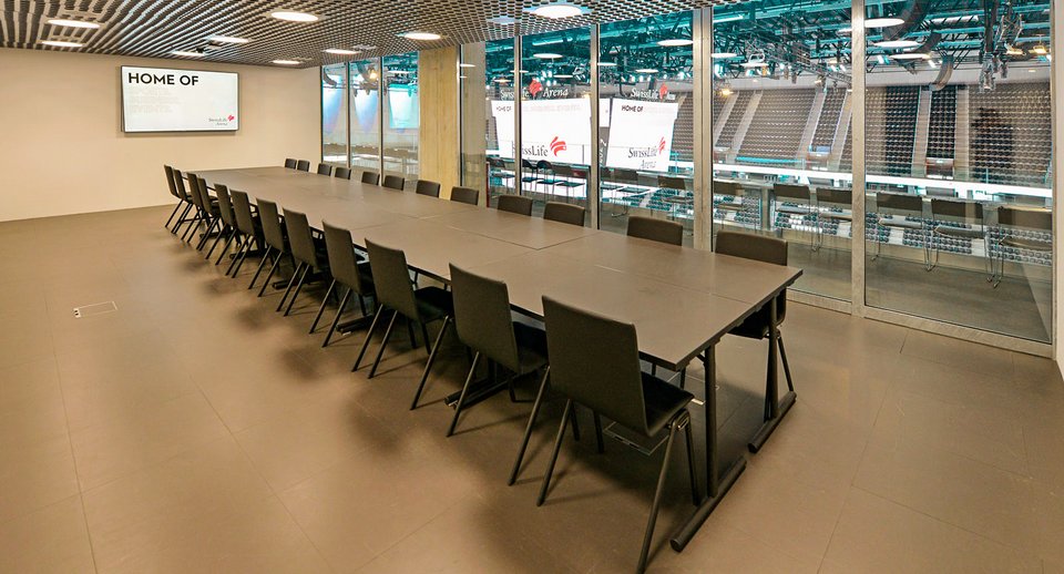 In unserem klassischen Konferenzraum Sulo gibt es nebst dem Geschäftlichen, tolle Einblicke in die Swiss Life Arena.